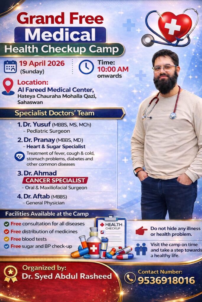 Access to quality healthcare remains a challenge for many people, especially when it comes to early diagnosis and preventive care. Taking a meaningful step in this direction, a Grand Free Medical Health Checkup Camp is being organized to provide essential healthcare services to the community.